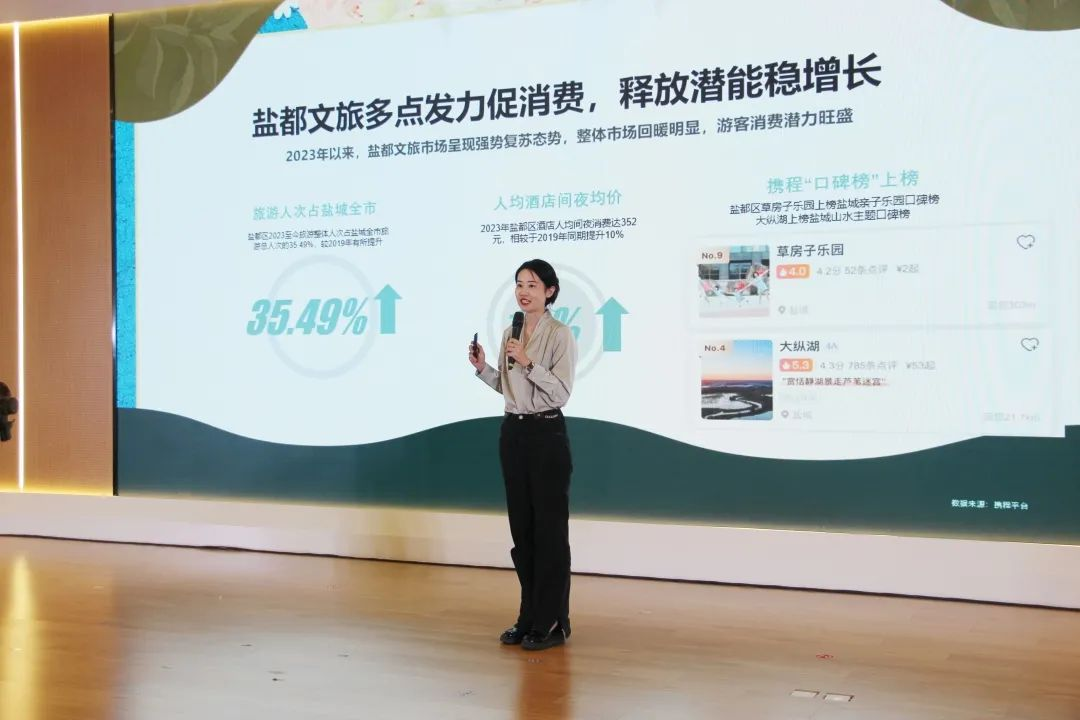 在推介會上,攜程集團政府合作部項目總監王焱發布“鹽都文旅及攜程集團2023年戰略合作”重點內容,深度剖析雙方未來合作的藍圖。她提到,2023年以來,鹽都文旅市場呈現強勢復蘇態勢,整體市場回暖明顯。攜程一直都是鹽城文旅發展道路上堅實的合作伙伴。去年雙方共同打造的“到鹽城·嗨周末”品牌獲評文旅部2022年旅游宣傳推廣優秀案例。而今年,攜程將繼續深耕鹽城文旅,在全市文旅資源的加持之下,依托2023年攜程集團振興A計劃開拓區縣合作,與鹽都文旅建立戰略合作關系,協同并進共育花開。攜程集團將聚合站內外流量資源,從產品、營銷、消費三大層面開足馬力驅動文旅建設加速度,“串珠成鏈”,多措并舉推動鹽都文旅造就高質量發展格局。