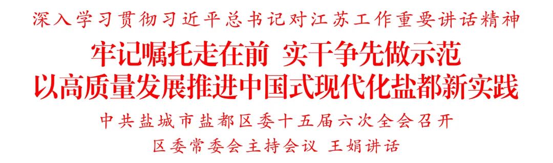 全會審議通過《中國共產黨鹽城市鹽都區第十五屆委員會第六次全體會議決議》。
